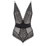 Unveil your most alluring side with the Destinos Pearl Bodysuit, a masterpiece of delicate artistry and modern seduction. Crafted from sheer black mesh and adorned with intricate floral lace embroidery, this bodysuit features a deep plunging neckline that elongates the silhouette while adding irresistible drama.