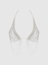 Turn every moment into a grand entrance with the Rhinestone Net Halter in silver. Designed for women who crave luxury and confidence, this rhinestone halter has an openable front with cascading crystals that catch the light with every movement. The deep V-neckline and structured layering offer both seduction and support, making it the perfect luxury halter neck body jewelry for a night out, romantic evening, or bridal celebration. Whether paired with a sleek skirt or layered beneath a blazer, this elegant gold bustier ensures you’ll sparkle with intention.
