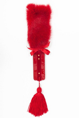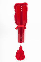 This luxury double-sided leather paddle features two different spanking sensations. Hard patent leather for punishment and soft fur to caress the skin. Use the fringe tassel to tease and stimulate your lover even more. This is the ultimate bedroom pleasure tool.