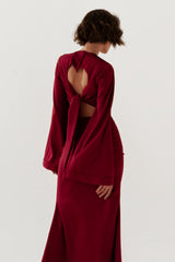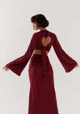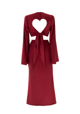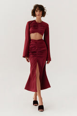 For the most beautiful date nights, slip on this gorgeous satin skirt set. Encapsulating love with its heart-shaped back detail and cropped blouse, you'll both be swooning all night.
