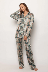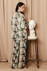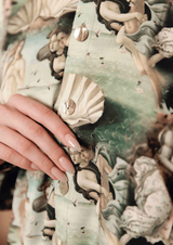 Inspired by the painting of Sandro Botticelli, this gorgeous satin loungewear set portrays the goddess of love and beauty arriving on Earth. A true masterpiece for your most beautiful dreams.